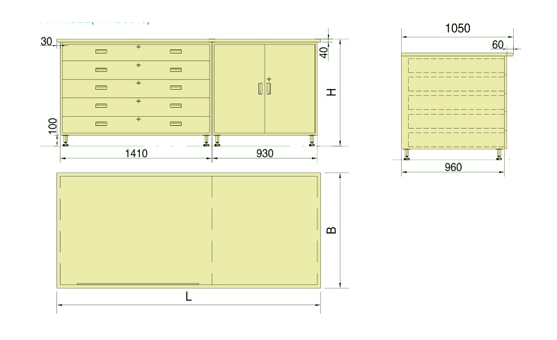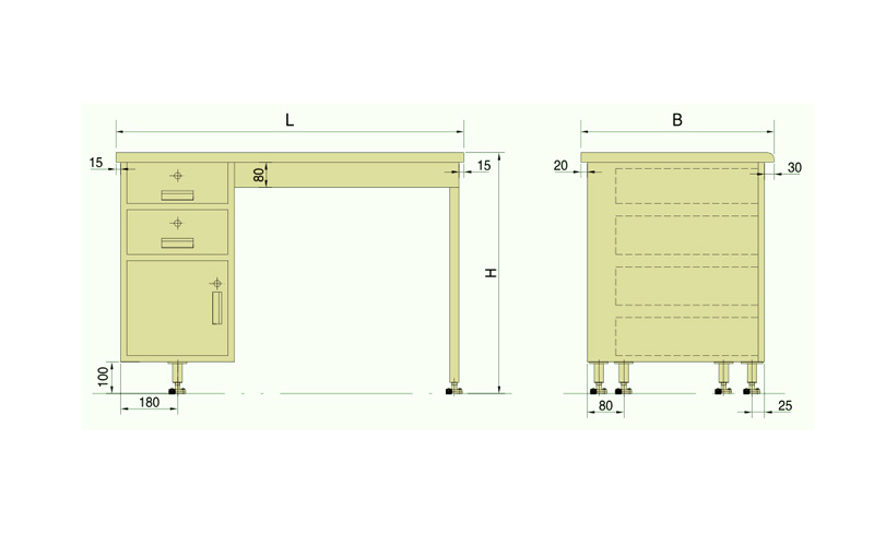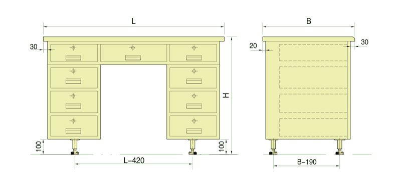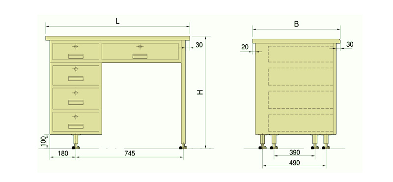 LEFT TYPE SINGLE PEDESTAL DESK(TYPEDZ),RIGHT ONE(TYPEDY)IS SYMMETRICAL