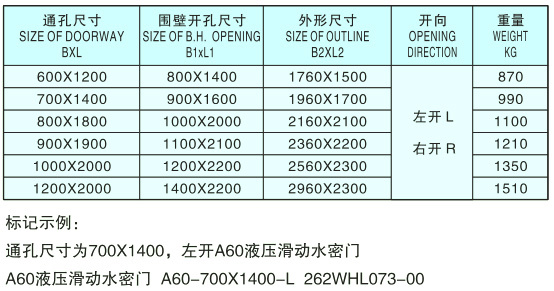 A60液压滑动式水密门